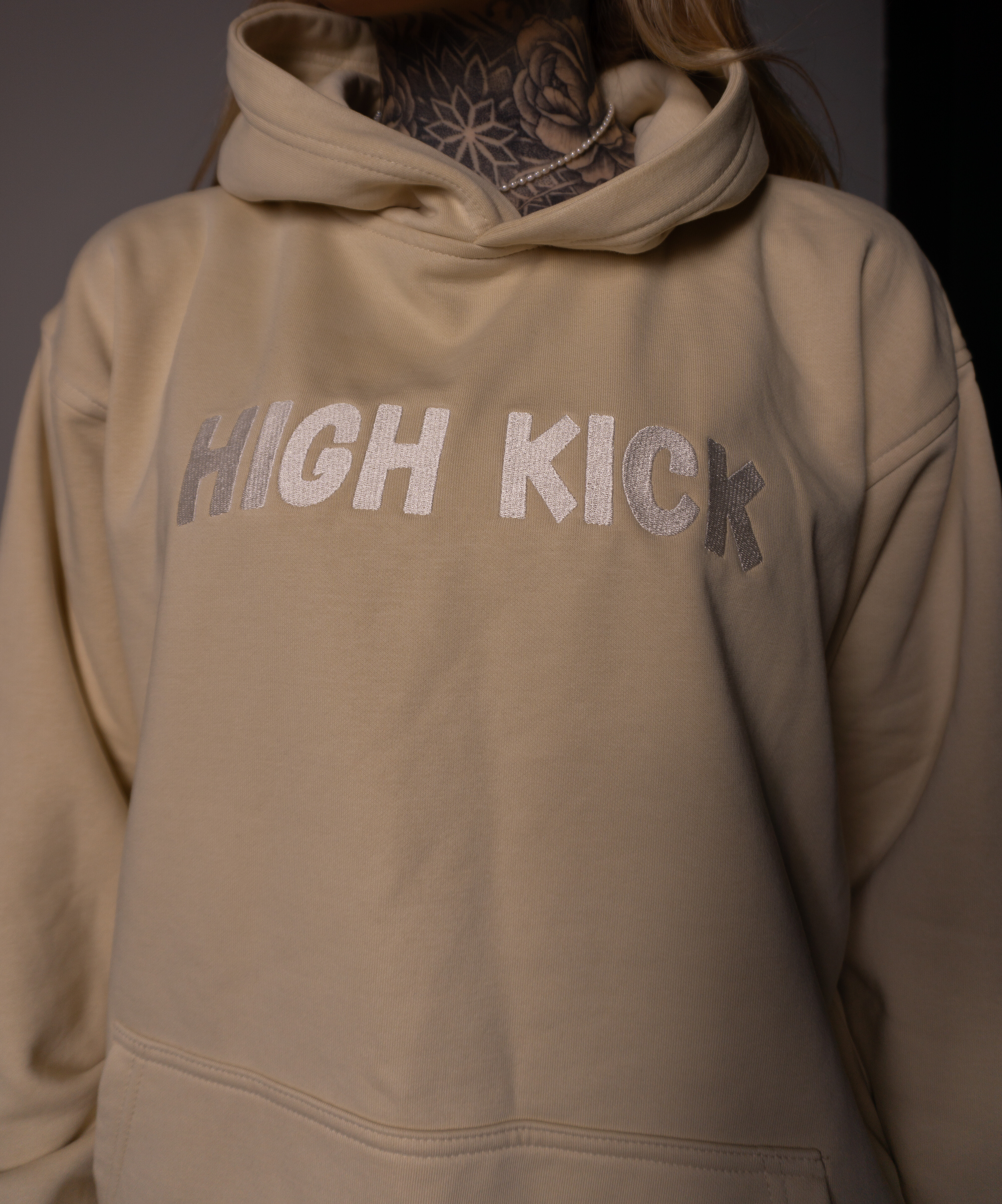 Bluza beżowa haft HIGH KICK to połączenie minimalistycznego stylu i maksymalnego komfortu. Uszyta z miękkiej, wysokogatunkowej bawełny, posiada obszerny kaptur i dużą kieszeń typu kangurka. Na przodzie haftowany napis HIGH KICK, który nadaje całości charakteru streetwearowego i sportowego zarazem. Idealna na co dzień, trening i chłodniejsze dni.