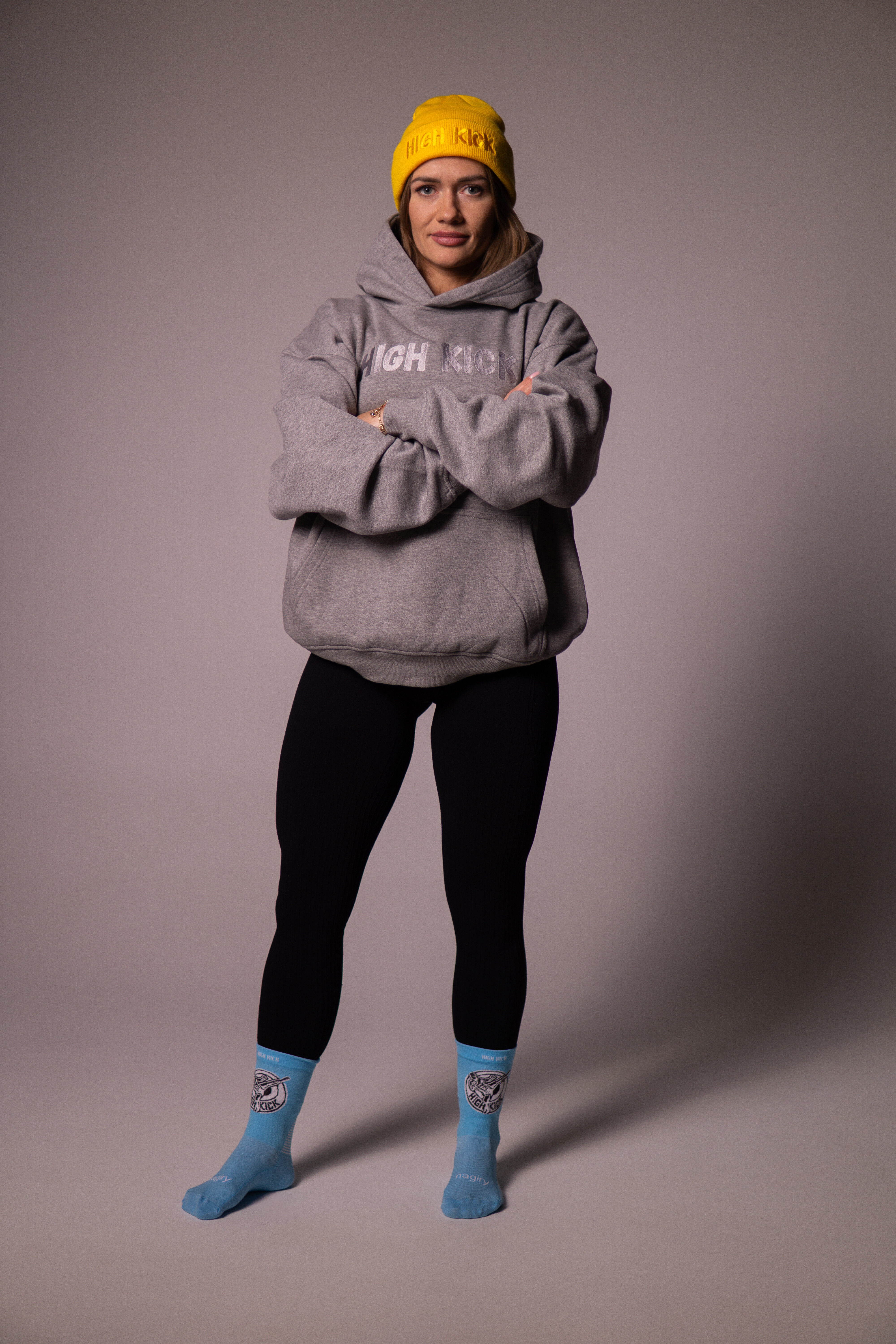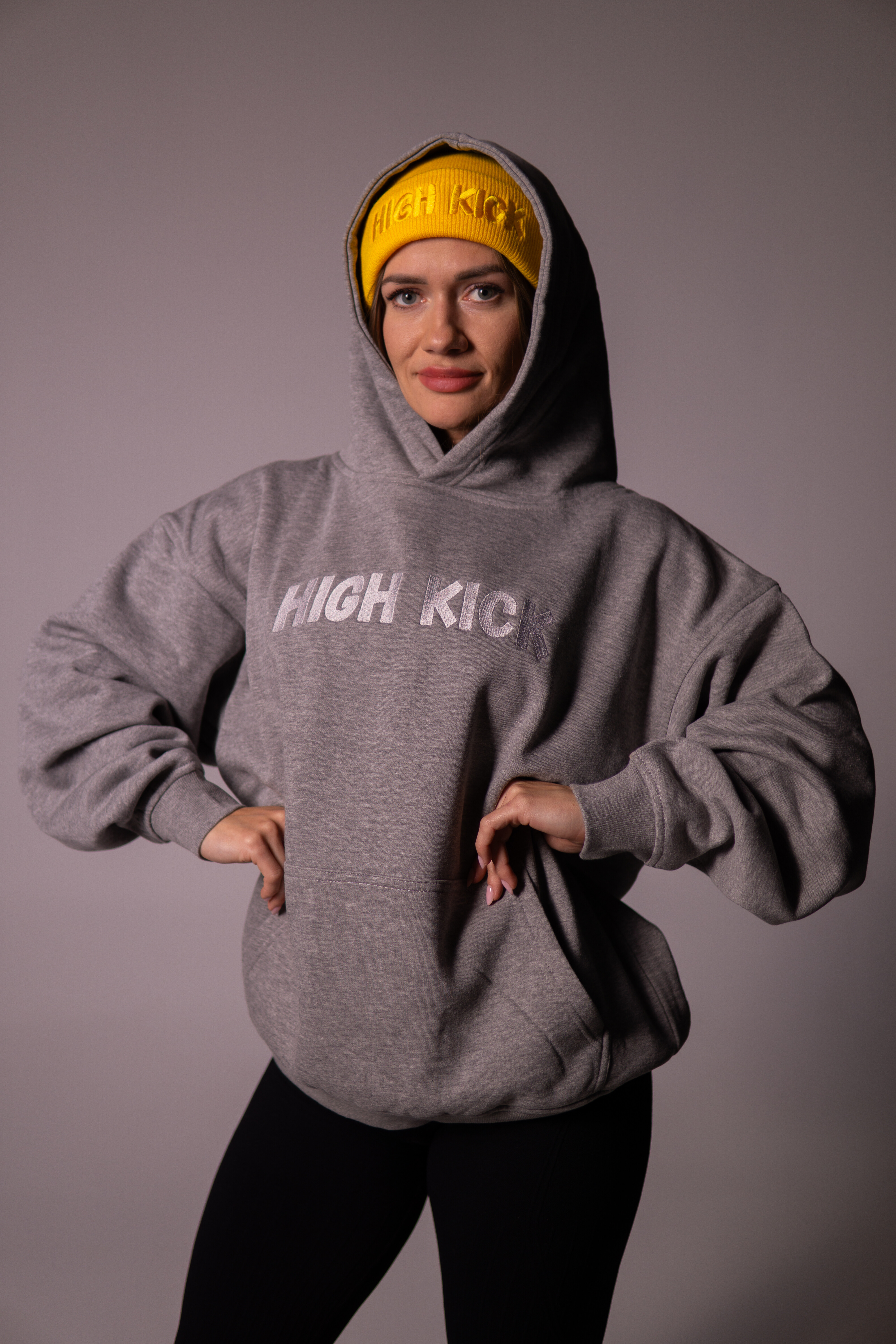 Bluza szara haft HIGH KICK to połączenie minimalistycznego stylu i maksymalnego komfortu. Uszyta z miękkiej, wysokogatunkowej bawełny, posiada obszerny kaptur i dużą kieszeń typu kangurka. Na przodzie haftowany napis HIGH KICK, który nadaje całości charakteru streetwearowego i sportowego zarazem. Idealna na co dzień, trening i chłodniejsze dni.