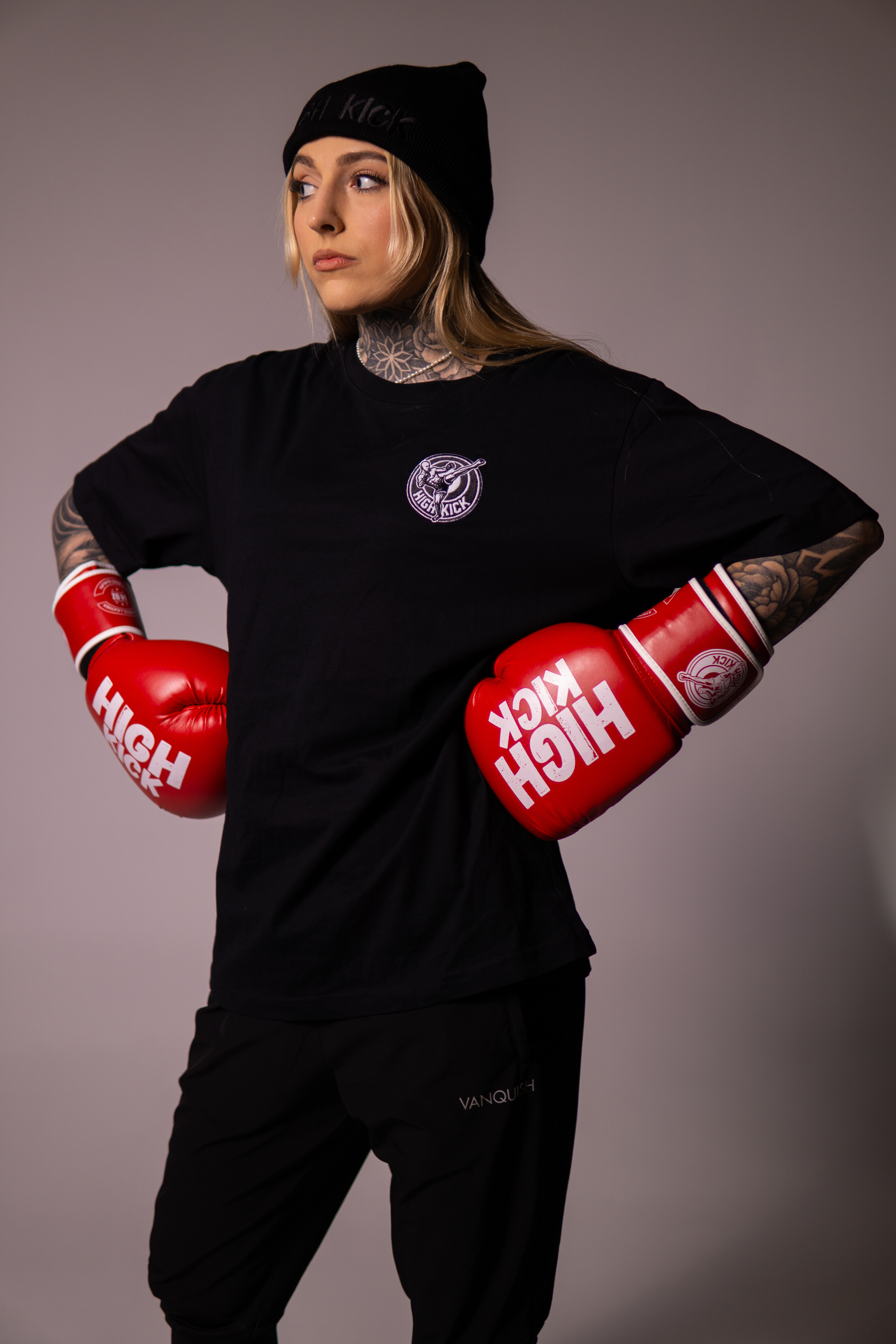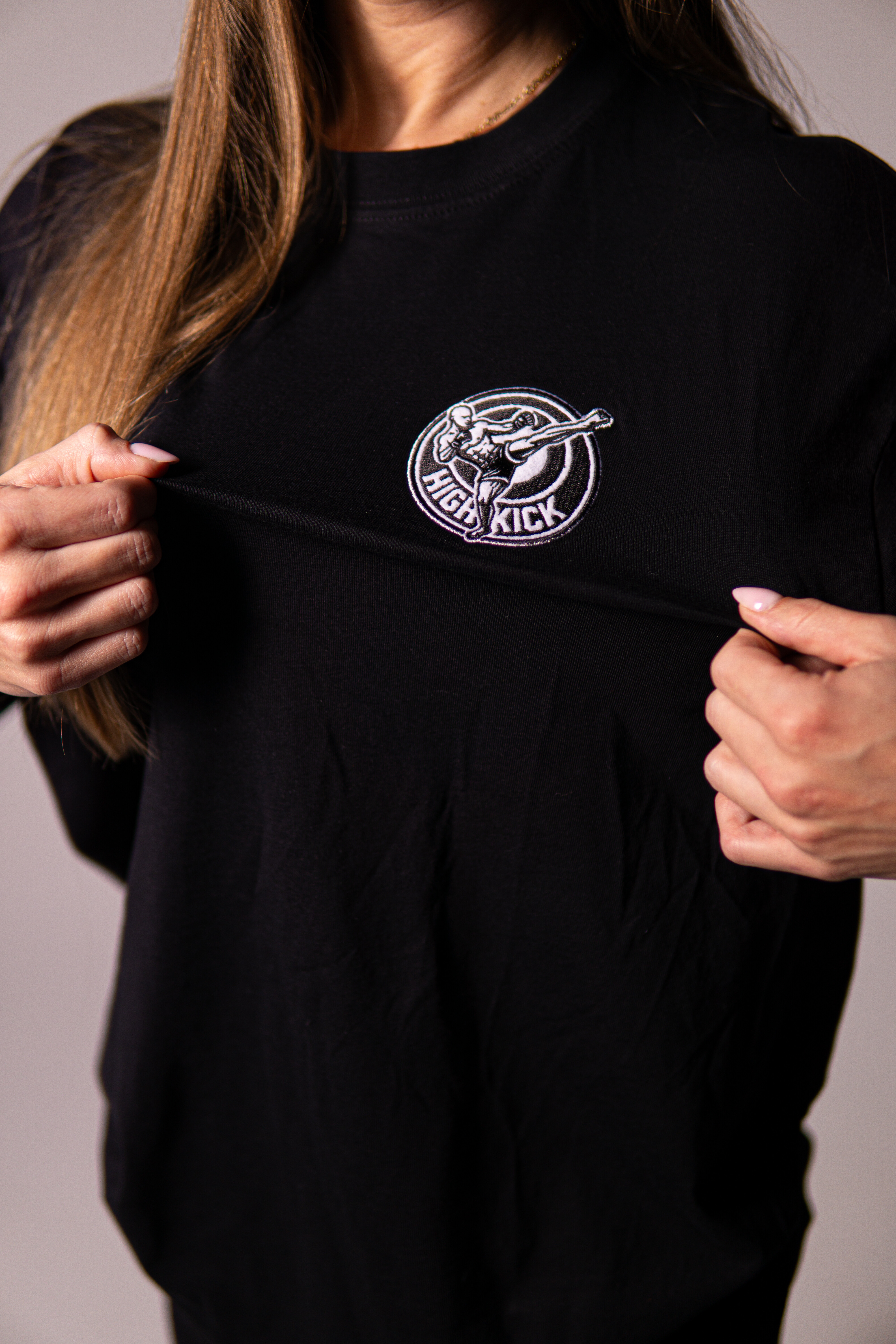 Czarna koszulka HIGH KICK w klasycznym, luźnym kroju oversize.